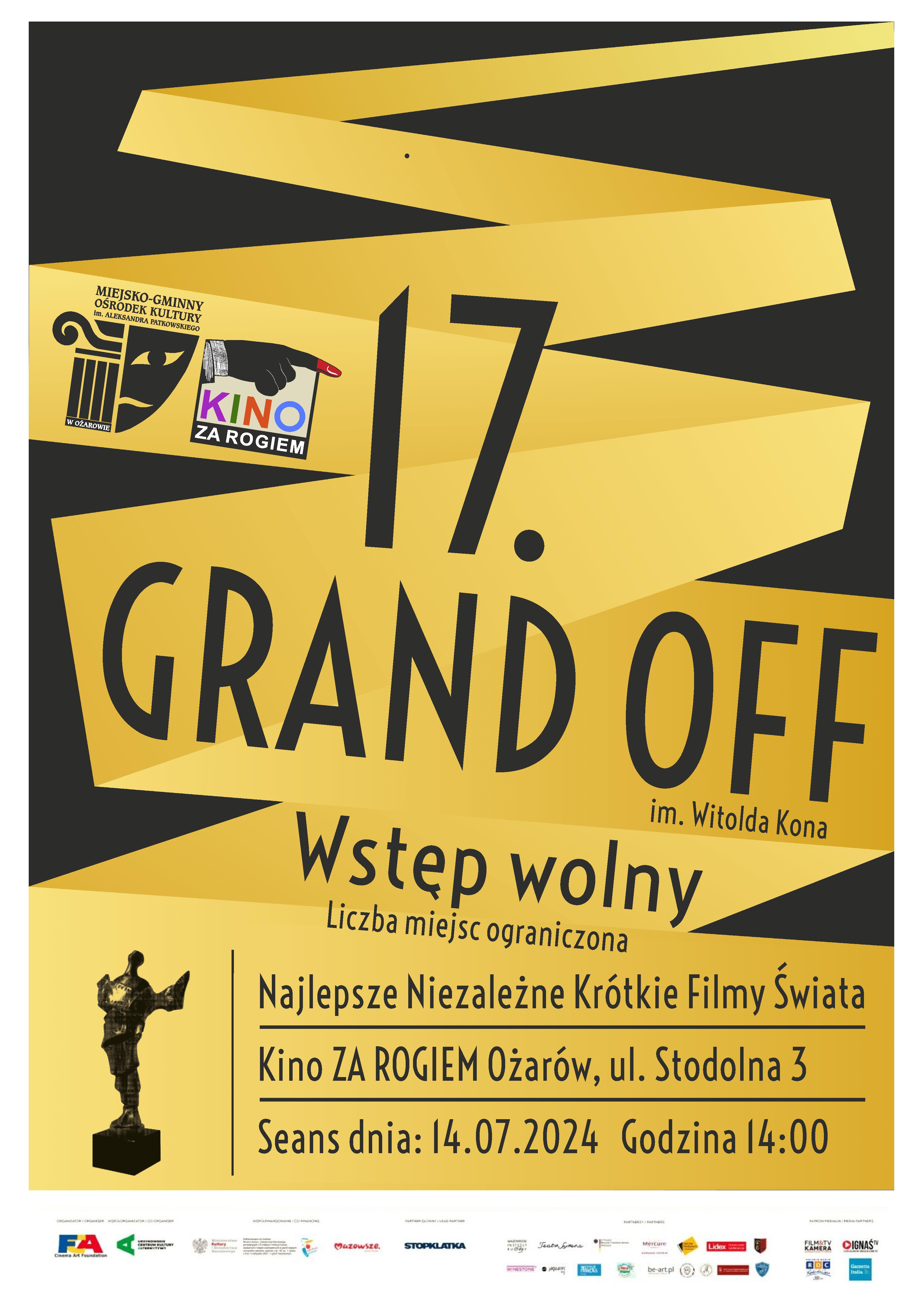 Zapraszamy na 17. Grand Off im. Witolda Kona; wstęp wolny; liczba miejsc ograniczona Czas i miejsce14 lipca 2024, godzina 14:00 Kino "Za rogiem" Ożarów, ul. Stodolna 3 |