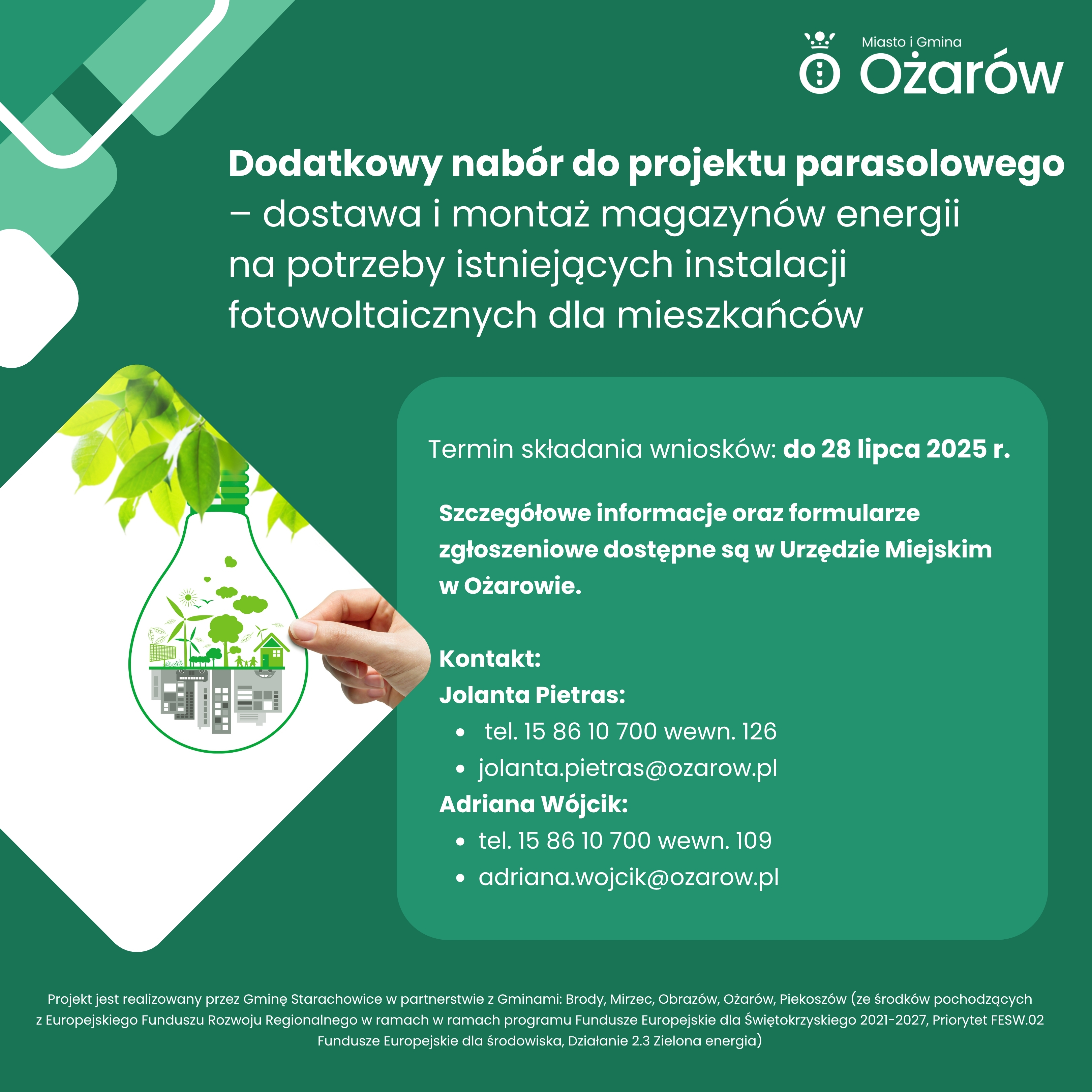Dodatkowy nabór do projektu parasolowego - dostawa i montaż magazynów energii na potrzeby istniejących instalacji fotowoltaicznych dla mieszkańców.