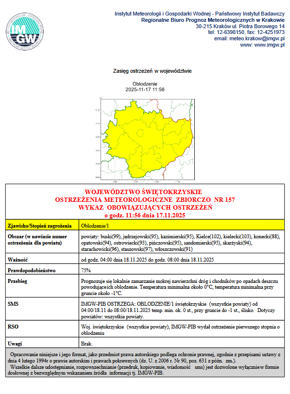 Ostrzeżenie meteorologiczne - oblodzenieArchiwum