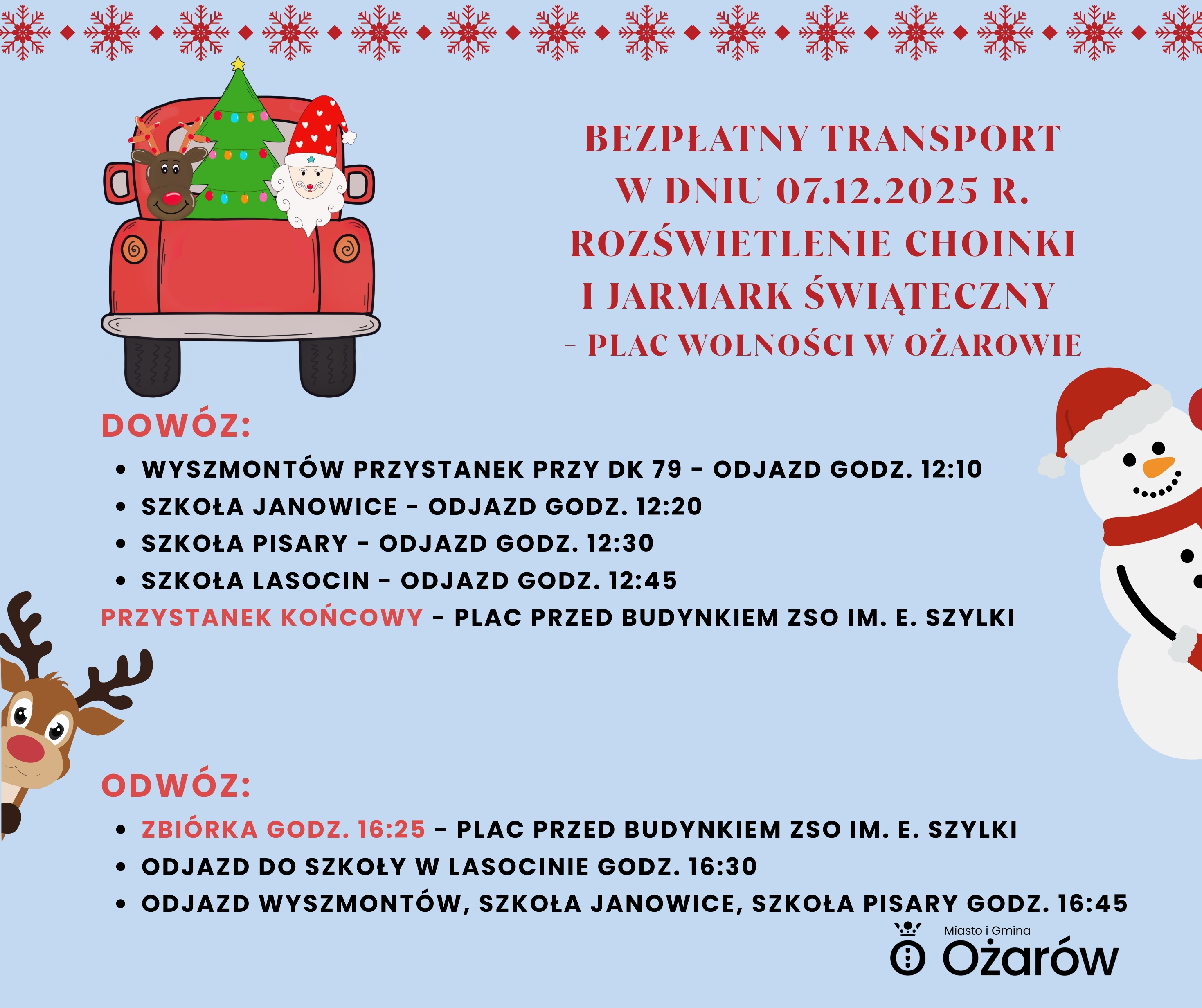 W celu ułatwienia dotarcia na wydarzenie organizowany jest BEZPŁATNY dowóz/odwóz. Szczegóły na grafice poniżej.