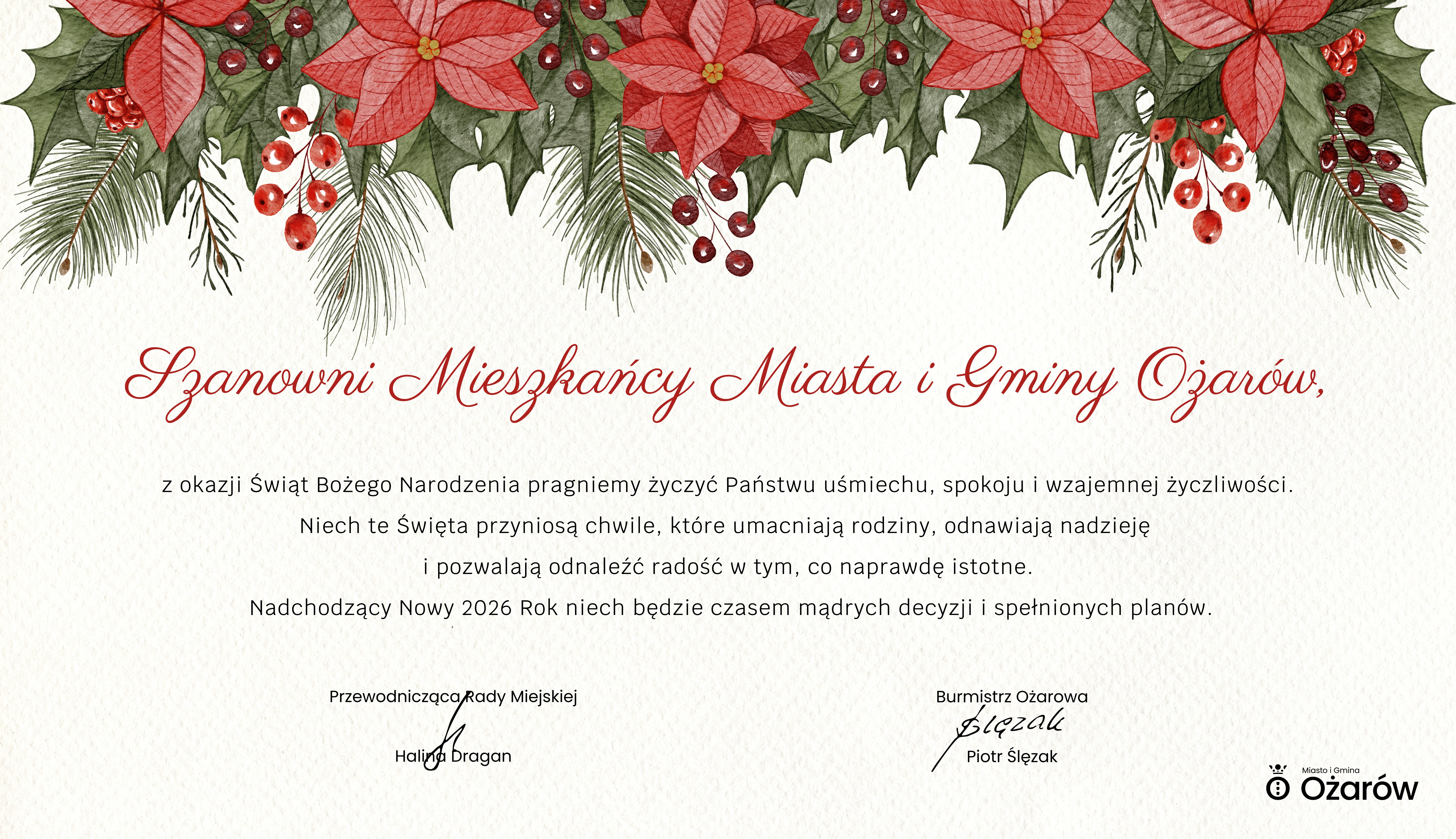 Życzenia Bożonarodzeniowe dla społeczności Miasta i Gminy OżarówArchiwum